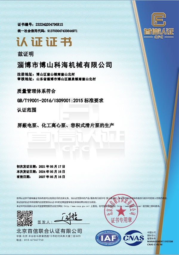 ISO9001質(zhì)量認證體系認證·多年專注于耐酸泵化工泵生產(chǎn)制造
